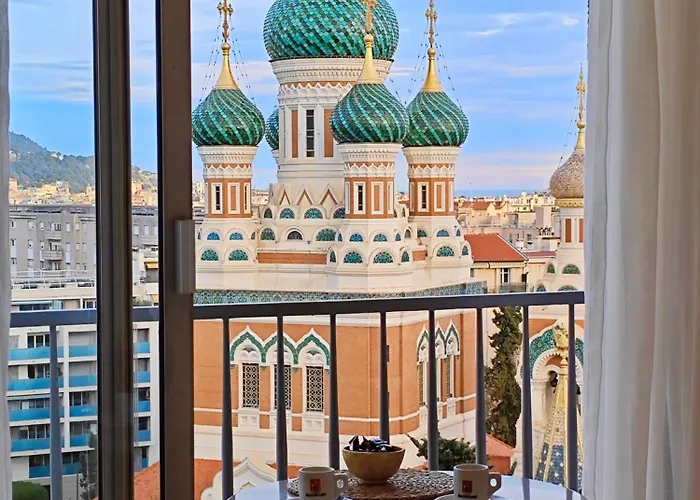 3P 72M2 Climatise Vue Exceptionnelle Cathedrale St Nicolas Et Mer apartment lies next to the Eastern St Nicholas Cathedral.